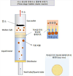 - A hydrocarbon pyrolysis reactor with a bubble column design incorporating a molten metal layer, a molten salt layer, and an interfacial property control unit, such as a laminated bead or porous material, to control gas bubble size and residence time, reducing the need for molten salt and enhancing thermal efficiency.