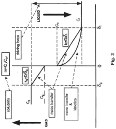 Technical Solution: Georgia Tech Research Corporation has developed an innovative ionic liquid-infused membrane technology with integrated catalytic sites specifically designed for pharmaceutical CO2 capture applications. Their approach features a composite membrane structure incorporating task-specific ionic liquids (TSILs) with amine-functionalized groups that serve as both selective transport facilitators and catalytic centers for CO2 capture. The membrane system utilizes a proprietary polymer matrix (modified PDMS-PEG copolymer) that provides mechanical stability while allowing controlled mobility of the ionic liquid component, creating dynamic CO2 transport pathways. Georgia Tech's innovation includes a nano-engineered interface between the ionic liquid and polymer phases that prevents leaching while maintaining high CO2 permeability (>1000 Barrer) and selectivity (CO2/N2 > 30) under pharmaceutical operating conditions. The system incorporates zinc-based metalloenzyme mimics as catalytic centers, achieving reaction rates comparable to natural carbonic anhydrase while maintaining stability in pharmaceutical processing environments. Laboratory testing has demonstrated consistent performance across temperature ranges of 20-70°C and in the presence of common pharmaceutical solvents and excipients[9][10].