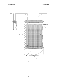 Technical Solution: Syzygy Plasmonics has developed a groundbreaking photocatalytic reactor design that utilizes light-activated catalysts for artificial photosynthesis. Their technology employs plasmonic nanoparticles that enhance light absorption and energy conversion efficiency. The reactor architecture features a distributed light delivery system that ensures uniform illumination throughout the reaction chamber, maximizing photon utilization. Their proprietary "Rigel" reactor platform integrates advanced materials including gold and silver nanostructures that create localized surface plasmon resonance effects, dramatically increasing reaction rates and quantum efficiency. The system operates at ambient temperatures and pressures, significantly reducing energy requirements compared to traditional thermocatalytic processes. Syzygy's modular design allows for scalable implementation across various applications, from hydrogen production to carbon dioxide conversion into valuable chemicals and fuels.