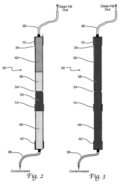 - Incorporating a breakthrough detection material, such as hydrated copper (II) chloride, which reacts with ammonia to form a plug or change color, triggering a mechanism to halt the gas flow when concentrations exceed a predetermined level, ensuring the hydrogen gas stream is terminated before it contaminates devices.