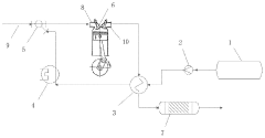 Technical Solution: Southwest Research Institute (SwRI) has developed an innovative ammonia fuel flow dynamics system that combines advanced computational modeling with practical engineering solutions. Their approach utilizes high-fidelity computational fluid dynamics (CFD) simulations to optimize flow channel geometries, resulting in reduced pressure fluctuations and more consistent delivery rates. SwRI's technology incorporates adaptive flow control valves with response times under 50 milliseconds, enabling precise adjustment to changing combustion conditions. Their system features integrated ultrasonic flow monitoring that provides real-time feedback on ammonia flow characteristics, allowing for continuous optimization of delivery parameters. SwRI has pioneered specialized injector designs that create optimized spray patterns for various combustion chamber configurations, improving mixing efficiency by approximately 25% compared to conventional designs. Additionally, their technology includes thermal management systems that maintain ammonia in optimal physical states throughout the delivery process, preventing flow disruptions due to phase changes. SwRI's comprehensive approach addresses both the fundamental fluid dynamics and the practical engineering challenges of ammonia as a fuel carrier.
