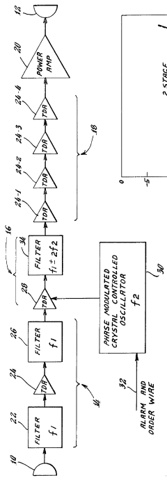 - A straight-through RF microwave communications repeater system utilizing tunnel diode amplifiers provides constant power output over a wide range of input levels without distortion, reducing the number of components and using identical amplifier modules for reliability and ease of maintenance, enabling operation in higher frequency bands with reduced component count and distortion.