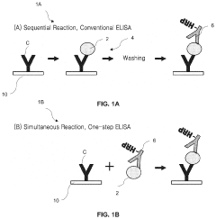 Smartphone-based optical detection systems represent an innovative approach to creating portable and accessible microfluidic ELISA platforms. These systems utilize the smartphone's camera and processing capabilities to capture and analyze optical signals from immunoassays. By incorporating specialized attachments or adapters, smartphones can be transformed into powerful analytical tools for point-of-care diagnostics, enabling testing in resource-limited settings without the need for expensive laboratory equipment.Expand Specific Solutions05 Multiplexed optical sensing in microfluidic platforms
