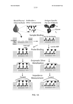 Technical Solution: The University of California has developed a sophisticated microfluidic ELISA platform with integrated optical sensing capabilities based on photonic crystal technology. Their system incorporates one-dimensional photonic crystal structures directly into microfluidic channels, creating highly sensitive label-free detection zones. The platform utilizes a proprietary nanofabrication process that enables mass production of these integrated devices with exceptional reproducibility. Their technology employs a specialized optical setup with angle-resolved spectroscopy to detect minute changes in the photonic crystal resonance conditions upon biomolecular binding events. The system features automated microvalve control for precise reagent delivery and washing steps, significantly improving assay reproducibility. UC researchers have implemented advanced surface chemistry modifications that enhance protein immobilization while minimizing non-specific binding, resulting in improved signal-to-noise ratios. The platform includes custom software for real-time data analysis and visualization, enabling rapid interpretation of complex binding kinetics[9][11].