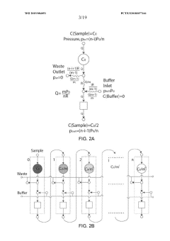 Technical Solution: EPFL has developed an advanced integrated optical sensing platform for microfluidic ELISA that utilizes photonic integrated circuits (PICs) fabricated on silicon nitride substrates. Their approach incorporates ring resonator arrays and Mach-Zehnder interferometers directly into microfluidic channels, enabling multiplexed, label-free detection with exceptional sensitivity. The system features proprietary surface functionalization techniques that enhance biomolecule capture efficiency while minimizing non-specific binding. EPFL's platform employs a tunable laser source coupled with an integrated photodetector array for precise optical measurements across multiple wavelengths. Their technology includes innovative microfluidic channel designs that optimize sample delivery to sensing regions while minimizing reagent consumption. The platform incorporates automated temperature control systems to maintain optimal reaction conditions and compensate for thermal drift effects on optical measurements[4][7].