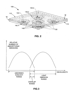 Material compatibility issues further complicate integration efforts. LSC systems require specific photoluminescent materials that must maintain their optical properties while being incorporated into smart glazing structures. Current chromogenic materials used in smart glazing (electrochromic, thermochromic, or photochromic) often interact negatively with luminescent dyes and quantum dots used in LSCs, resulting in reduced efficiency for both systems. The degradation rates of these combined materials also differ significantly, creating long-term performance inconsistencies.