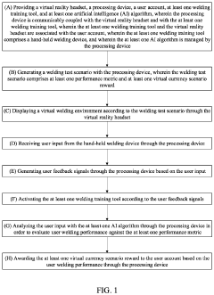 Technical Solution: Illinois Tool Works (ITW) has integrated virtual reality into its welding training programs through its Miller Electric division. The company has developed the AugmentedArc Augmented Reality Welding System, which, while primarily focused on arc welding, also incorporates elements applicable to gas welding training. The system uses a blend of augmented reality and real welding equipment to create a hybrid training environment. Trainees use actual welding guns fitted with sensors, interacting with virtual workpieces displayed through an AR helmet. This approach allows for the development of proper muscle memory and body positioning while eliminating material waste and safety risks associated with traditional training methods[6]. The AugmentedArc system provides real-time feedback on technique, travel speed, and work angle, allowing trainees to quickly identify and correct errors. It also includes a comprehensive curriculum covering welding theory and practice, with modules that can be customized to specific training needs[7].