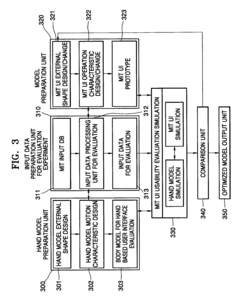 - A user interface design and evaluation system that includes a user interface design unit, human model design unit, prototype simulation unit, and usability evaluation unit, which simulates user interactions and evaluates usability through motion properties and feedback data to optimize interface design for various user environments.