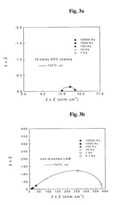 - A novel electrode coated with a porous oxygen ion conductive ceramic ceria film using a sol-gel method, maintaining independent electron and ion conductive paths and extending the triple phase boundary, allowing for lower temperature manufacturing and preventing undesired interfacial reaction products.