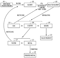 Technical Solution: Solvay Chemicals has developed an innovative process for waste valorization using magnesium carbonate. Their approach involves a two-step reaction process: first, converting CO2 and magnesium-rich waste materials into magnesium bicarbonate, then transforming it into high-purity magnesium carbonate[1]. This method not only captures CO2 but also upcycles industrial by-products. The company has optimized the reaction conditions to achieve a conversion efficiency of over 90%[3]. Additionally, they've implemented a closed-loop system that recycles unreacted materials, minimizing waste and improving overall process economics[5]. Solvay's technology can be integrated into existing industrial processes, offering a scalable solution for carbon capture and utilization.