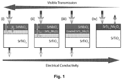 Research on transparent conductive oxides focuses on developing alternative materials to replace conventional options like indium tin oxide, which faces supply constraints and cost issues. Novel TCO materials include aluminum-doped zinc oxide (AZO), fluorine-doped tin oxide (FTO), and various ternary compounds. Additionally, enhancements to existing TCOs through nanostructuring, composite formation, and innovative doping strategies aim to improve electrical conductivity without sacrificing optical transparency, while also addressing challenges related to mechanical flexibility and environmental stability.Expand Specific Solutions