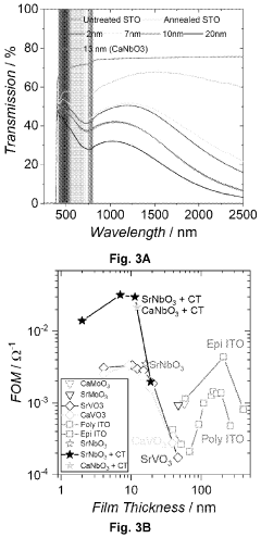 - Enhancement of transparent conductive oxide properties: Various approaches are employed to enhance the properties of transparent conductive oxides, including doping with different elements, creating composite structures, and post-deposition treatments. These methods aim to improve electrical conductivity, optical transparency, mechanical flexibility, and environmental stability. Innovations in material design and processing techniques continue to push the performance boundaries of transparent conductive oxides, enabling their use in increasingly demanding applications.