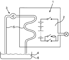 - A high-voltage battery device with a cooling circuit integrated collection container that collects cooling fluid, ensuring it is completely emptied when not in use, primarily through gravitational force or controlled venting, minimizing contact with live components.