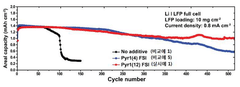 - Ionic liquid additives in conventional electrolytes: Incorporating ionic liquids as additives in conventional electrolytes can effectively control lithium dendrite growth. These additives modify the properties of the electrolyte system, enhancing the uniformity of lithium deposition and reducing dendrite formation. The ionic liquid additives can be used in small concentrations to improve the performance and safety of lithium metal batteries without significantly altering other electrolyte properties.