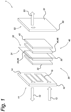 - Incorporating conductive mesh foils between the catalyst layers and the proton exchange membrane or porous transport layers to create lateral shunts, ensuring electrical connectivity and reducing Ohmic resistance, thereby enhancing catalyst utilization and efficiency.