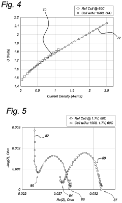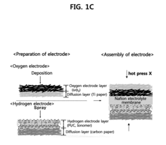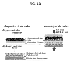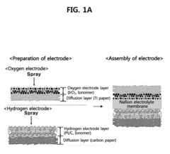 Technical Solution: Umicore SA has been at the forefront of developing iridium alternatives for PEM electrolyzers. Their research focuses on creating novel catalyst formulations that reduce or eliminate iridium content while maintaining high performance. Umicore has made significant progress with ruthenium-based catalysts, demonstrating activities comparable to iridium-based catalysts in laboratory tests[10]. The company is also exploring the use of bimetallic and trimetallic nanoparticles, combining less expensive metals with small amounts of iridium to achieve synergistic effects[11]. Umicore's approach includes the development of advanced support materials that enhance catalyst stability and conductivity. They have reported success with doped titanium oxides and carbon-based supports that improve catalyst dispersion and longevity[12]. Additionally, Umicore is investigating the potential of non-PGM catalysts, such as transition metal oxides and nitrides, for long-term use in PEM electrolyzers[13].