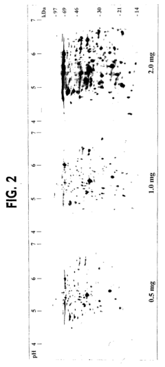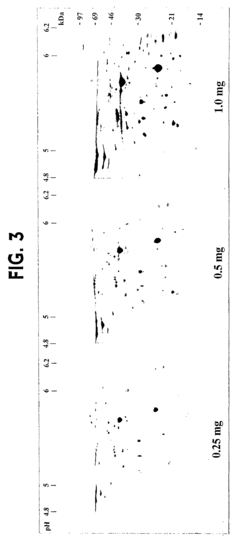 Technical Solution: Amersham Biosciences (now part of Cytiva/GE Healthcare) has developed sophisticated IEF technologies specifically engineered for complex protein sample analysis. Their Multiphor II and Ettan IPGphor systems represent significant advancements in handling challenging protein mixtures through immobilized pH gradient (IPG) technology. Amersham's approach incorporates covalently immobilized ampholytes within polyacrylamide gels, creating stable pH gradients that resist cathodic drift—a critical advantage when analyzing complex samples over extended separation times. Their technology includes specialized sample application methods that ensure uniform protein loading across the pH gradient, enhancing reproducibility with heterogeneous samples[3]. Amersham has also pioneered narrow-range IPG strips that provide enhanced resolution within specific pH intervals, allowing researchers to zoom in on crowded regions of complex proteomes. Their systems feature precise temperature control mechanisms that prevent protein precipitation during focusing, a common challenge with complex biological samples containing diverse protein classes.