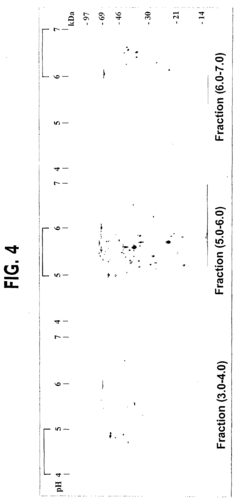 - Novel detection methods for IEF analysis: Innovative detection methods have been developed to enhance the visualization and quantification of proteins separated by isoelectric focusing. These include fluorescent labeling techniques, digital imaging systems, and spectroscopic methods that improve sensitivity and dynamic range. Some approaches incorporate real-time monitoring capabilities to observe the focusing process as it occurs. These detection advancements allow for the identification of low-abundance proteins and provide more accurate quantitative analysis.