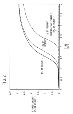 Regulatory frameworks establish minimum performance and efficiency standards for hydrogen storage materials. These requirements specify metrics such as hydrogen storage capacity, charging/discharging rates, cycle durability, and energy efficiency. Materials must demonstrate reliable performance under various operating conditions, including temperature and pressure variations. Performance standards are designed to ensure that hydrogen storage solutions meet the needs of end applications, whether for stationary power generation, transportation, or portable devices. Compliance with these standards is essential for market approval and commercial viability of hydrogen storage technologies.Expand Specific Solutions