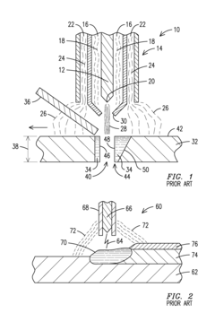 Optimizing process parameters such as welding speed, power density, and beam focus in laser welding, or current settings and electrode selection in SMAW, can significantly impact energy consumption. Automated parameter selection systems can determine the most energy-efficient settings based on material properties and joint design. Adaptive control systems that continuously monitor and adjust welding parameters in real-time help maintain optimal energy efficiency throughout the welding process, compensating for variations in material or environmental conditions.Expand Specific Solutions04 Hybrid welding technologies for improved efficiency