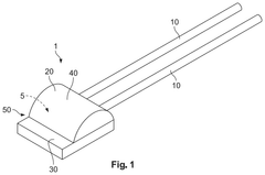 Various cooling system designs have been developed to maximize the performance of lead-free electrocaloric materials. These systems incorporate heat exchangers, thermal switches, fluid-based heat transfer mechanisms, and regenerative cycles. Advanced system architectures include cascaded cooling stages, active regeneration, and integrated electronic control systems. These designs aim to optimize the heat transfer efficiency, reduce parasitic losses, and increase the coefficient of performance of lead-free electrocaloric cooling devices.Expand Specific Solutions04 Manufacturing methods for lead-free electrocaloric devices