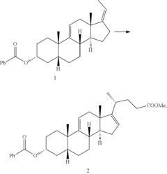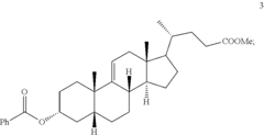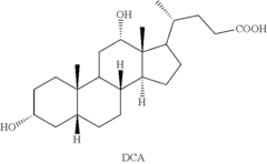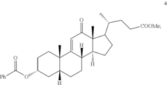 - A chemical synthesis method involving a series of reactions, including reacting compound 1 with methyl acrylate in the presence of a Lewis acid, followed by hydrogenation, oxidation, and reduction steps, culminating in deprotection or hydrolysis to produce deoxycholic acid or its ester or pharmaceutically acceptable salts.