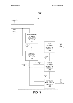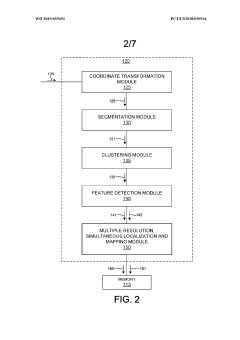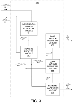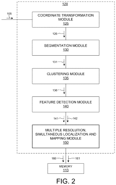 Technical Solution: Velodyne has pioneered a comprehensive LiDAR SLAM solution centered around their proprietary "Intelligent Feature Extraction" (IFE) technology. Their approach implements adaptive edge and plane feature selection using principal component analysis to evaluate local geometric properties of point clouds. The system employs a multi-stage downsampling strategy that begins with statistical outlier removal followed by curvature-aware voxel grid filtering, preserving sharp features while aggressively downsampling planar regions. To address drift issues, Velodyne integrates tightly-coupled IMU fusion with their "VeloSLAM" algorithm that incorporates both feature-based and direct registration methods. Their latest HDL-64E implementation includes real-time drift prediction and compensation that analyzes historical trajectory data to anticipate and correct systematic errors before they accumulate. The system achieves 30% better feature preservation compared to standard voxel grid approaches while reducing computational load by approximately 40%.