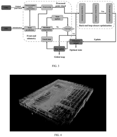 Technical Solution: TuSimple has developed a specialized LiDAR SLAM system for large-scale mapping focused on highway environments for their autonomous trucking technology. Their approach employs a multi-layered submap architecture specifically designed for long-distance travel scenarios. The system creates a sparse feature-based representation of the environment for global consistency while maintaining dense point cloud data only for critical areas. TuSimple's implementation uses a sliding-window optimization technique that maintains a fixed number of recent submaps in active memory while summarizing older map sections into compressed landmark representations. Their pose graph optimization incorporates GPS/INS data as constraints to improve global consistency over long distances. A key innovation in their system is the predictive submap loading mechanism that anticipates which map sections will be needed based on the vehicle's trajectory, minimizing latency during high-speed operation. TuSimple also implements specialized memory management techniques that prioritize road features and drivable surface representation while discarding less relevant environmental details, enabling efficient operation on vehicle-grade computing platforms.