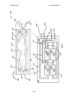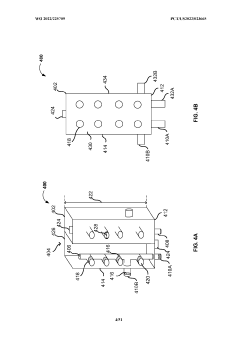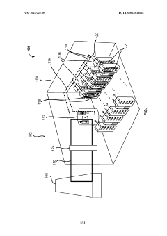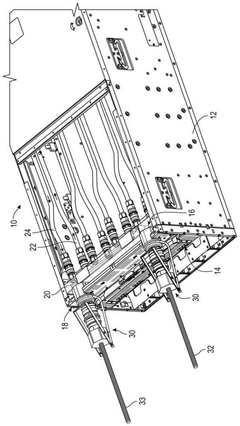 Technical Solution: IBM has pioneered advanced liquid cooling solutions for data centers with their Rear Door Heat eXchanger and direct liquid cooling technologies. Their server manifold design features a modular approach with centralized distribution units that connect to individual server racks through flexible, reinforced tubing systems. IBM's quick-disconnect couplings utilize a dual-valve design that automatically seals both ends when disconnected, virtually eliminating drip potential during maintenance. The company has developed a proprietary leak detection system that combines moisture sensors with pressure monitoring to identify potential failures before they cause damage. For serviceability, IBM implements a "warm-swap" capability that allows individual server components to be replaced without shutting down the entire cooling system. Their manifold design incorporates isolation valves that enable sections of the cooling loop to be serviced independently, minimizing downtime. IBM's solution also features transparent sections in critical junctions to allow visual inspection of coolant flow and quality.