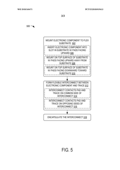- The use of flexible interconnects, such as liquid metal or conductive polymers, that bridge between conductive traces and pads on a flexible substrate, allowing for flexible electrical pathways and self-healing characteristics, while being encapsulated with a suitable material to maintain the connection and prevent damage from stress.