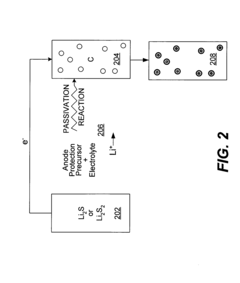 Technical Solution: Samsung SDI has developed an advanced lithium anode protection system for lithium-sulfur batteries utilizing a graphene-based protective layer. Their approach involves coating the lithium metal anode with a thin, flexible graphene oxide layer that has been chemically modified to enhance lithium-ion conductivity while blocking polysulfide migration. This protective layer is applied through a proprietary deposition process that ensures uniform coverage and strong adhesion to the lithium surface. Samsung's technology also incorporates functionalized nanoparticles embedded within the graphene layer that act as polysulfide traps, further preventing the shuttle effect. The company has additionally developed specialized electrolyte formulations containing lithium nitrate and other additives that work synergistically with the graphene coating to form a stable SEI layer. Recent testing has demonstrated that this protection system enables lithium-sulfur batteries to achieve over 400 cycles with capacity retention above 80%, representing a significant improvement over unprotected systems.