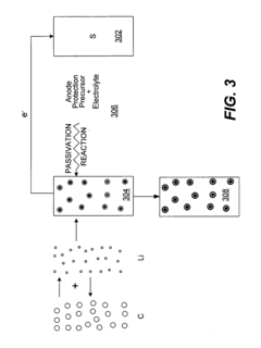 Modified electrolyte formulations can significantly improve lithium anode protection. These modifications include incorporating additives that form stable interfaces with lithium, using concentrated electrolytes that reduce solvent activity, or employing localized high-concentration electrolytes. Such approaches minimize parasitic reactions between the lithium anode and electrolyte components, reducing dendrite formation and improving cycling efficiency.Expand Specific Solutions04 Artificial SEI layers and interlayers
