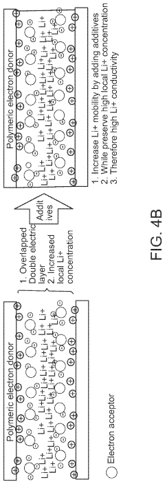 Technical Solution: Ionic Materials has developed a revolutionary solid polymer electrolyte platform that incorporates lithium chloride as a key component to enhance ionic conductivity. Their proprietary technology creates a polymer matrix that allows lithium ions to move efficiently through the material at room temperature without the need for liquid components. The polymer contains specially designed sites that interact with lithium chloride to create conduction pathways, enabling lithium-ion transport while maintaining mechanical stability. This approach addresses the traditional trade-off between mechanical properties and ionic conductivity in solid electrolytes. Their polymer electrolytes demonstrate conductivities exceeding 1 mS/cm at room temperature when optimized with lithium chloride additives, making them competitive with liquid electrolytes while eliminating safety concerns associated with flammable organic solvents[1][3].