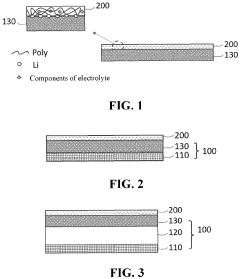 Strengths: Excellent integration with existing battery manufacturing infrastructure; superior thermal stability compared to conventional liquid electrolytes; demonstrated compatibility with high-voltage cathode materials. Weaknesses: Performance still lags behind liquid electrolytes at lower temperatures; mechanical properties deteriorate at higher lithium chloride concentrations; potential for lithium chloride to absorb moisture during manufacturing, requiring stringent humidity control.