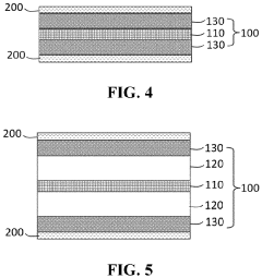 Advanced polymer architectures, including block copolymers, crosslinked networks, and functionalized polymers, can be designed specifically to accommodate lithium chloride and enhance ionic conductivity. These specialized polymer structures create organized ion transport channels while maintaining mechanical stability. The strategic design of polymer backbones with specific functional groups that interact favorably with lithium chloride results in electrolytes with superior performance characteristics.Expand Specific Solutions05 Temperature-resistant polymer electrolytes with lithium chloride