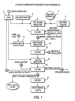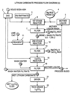 Various extraction and processing methods affect the chemical stability of lithium chloride and lithium carbonate. These methods include direct lithium extraction from brines, conversion processes between different lithium compounds, and purification techniques. The stability of these compounds during processing is critical for maintaining product quality and process efficiency. Factors such as pH control, temperature management, and reaction time optimization can significantly impact the stability of lithium compounds during extraction and processing.Expand Specific Solutions03 Impurity effects on lithium compound stability