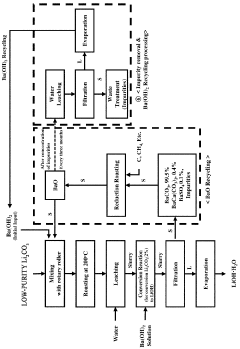 Temperature and pressure conditions significantly influence the reaction rates of lithium hydroxide in various chemical processes. Higher temperatures generally accelerate the reaction kinetics, allowing for faster conversion rates and improved efficiency. Similarly, controlled pressure conditions can enhance the reaction rates by affecting the solubility and reactivity of lithium compounds. Understanding and optimizing these parameters is crucial for developing efficient lithium hydroxide production methods with higher yields and lower energy consumption.Expand Specific Solutions03 Catalysts and additives for enhancing lithium hydroxide reaction rates