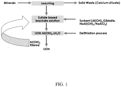 - A method involving the mixing of an aluminum-containing sorbent material, such as aluminum hydroxide or aluminum oxide, with a lithium sulfate aqueous solution, followed by heating to form a selective lithium-aluminum complex, which allows for the subsequent recovery of lithium with minimal contamination from other salts, and the regeneration of the sorbent material for reuse.