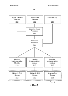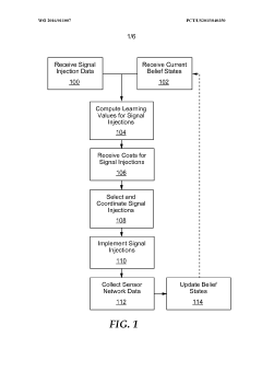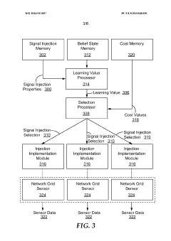 - The method involves receiving signal injection characteristics, computing learning values, selecting and implementing the most informative signal injections to improve grid and sensor response characterization, allowing for real-time, fine-tuned monitoring and management by automatically identifying and coordinating the most informative signal injection patterns.