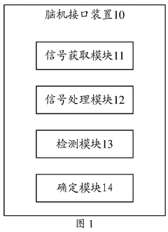 - By introducing signal acquisition modules, signal processing modules, detection modules and determination modules into the brain-computer interface device, the decoding model is realized using the memristor array, and error-related potential signals are detected during the interaction process, the decoding model parameters are updated, and the electroencephalopathy and memristor conductance drift phenomenon are overcome.