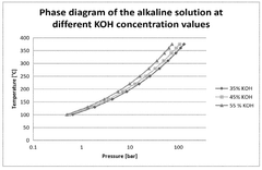 - A high temperature and pressure alkaline electrolysis method using a reversible cell with multilayer electrodes and a hydrophobic layer, where the aqueous alkaline solution of potassium hydroxide is heated and pressurized to maintain the liquid state, allowing efficient hydrogen and oxygen production.