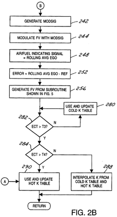 - A control method and system that utilize feedback control from an exhaust gas oxygen sensor to modulate fuel delivery, generating a fuel modulation signal and adjusting the air/fuel ratio with a variable feedback signal, increasing gain when lean conditions occur to prevent excessively lean excursions, and using a proportional plus integral controller to integrate error signals for precise corrections.