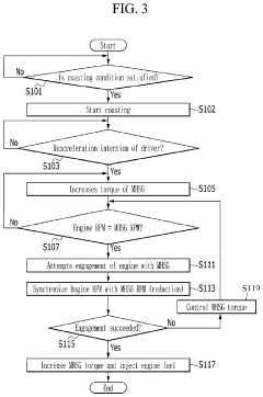 - A control method that synchronizes the RPM of the MHSG with the engine for a predetermined period before reacceleration, adjusting torque to match the engine's RPM and ensuring smooth engagement, thereby reducing rapid RPM variations and providing a stable driving experience.
