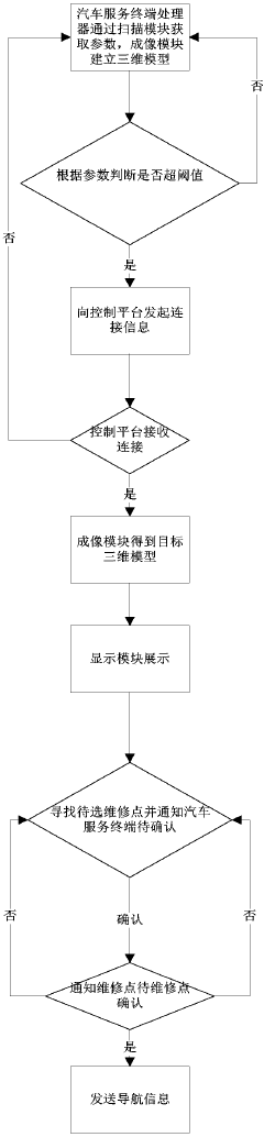 - An engine monitoring system based on virtual imaging is adopted to connect the control platform, car service terminal and maintenance point terminal through the network, and use infrared thermal imager and scanning module for real-time three-dimensional monitoring. Combined with the navigation module and alarm module, it can realize the intuitive reflection and detection of engine status. Get timely help.