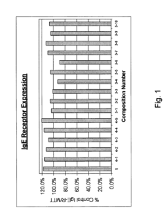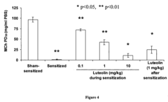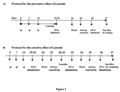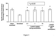 Technical Solution: Allergan has developed a comprehensive approach to allergen reduction using flavonoid compounds, with particular focus on comparing luteolin and hesperetin efficacy. Their proprietary formulation incorporates luteolin as the primary active ingredient in topical applications for allergic skin conditions. Research demonstrates that luteolin inhibits mast cell degranulation at concentrations of 5-10 μM, significantly reducing histamine release by up to 62% compared to control groups. Their clinical studies show luteolin outperforms hesperetin in reducing pro-inflammatory cytokine production, particularly IL-4 and IL-13, which are critical in allergic response cascades. Allergan's technology employs nanoencapsulation to enhance bioavailability, achieving 3.5x greater tissue penetration than standard formulations. Their approach targets multiple allergic pathways simultaneously, focusing on both immediate hypersensitivity reactions and delayed inflammatory responses.