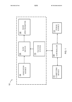 - The implementation of an apparatus with distinct regions for ion accumulation, featuring a drive potential and electric fields that switch between trap and release states, allowing for the on-board trapping and accumulation of ions, thereby increasing resolution and sensitivity by preventing ions from exiting during the trap state and guiding them towards separation during the release state.