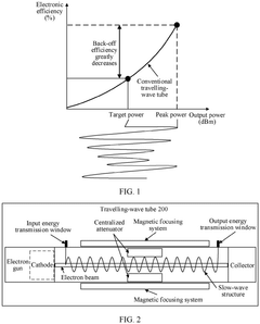 - Efficiency improvements in traveling wave tubes: Advancements in traveling wave tube (TWT) design have focused on improving energy efficiency to reduce operational costs. These improvements include enhanced electron beam focusing, better collector designs for energy recovery, and optimized RF circuit structures. Such developments have significantly increased the cost-effectiveness of TWTs in high-power applications like satellite communications and radar systems.