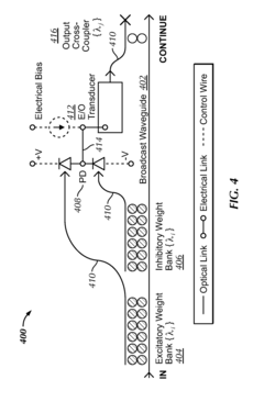Technical Solution: Intel has developed a silicon photonics platform specifically tailored for neural network implementations that addresses key regulatory challenges. Their approach integrates photonic components directly with CMOS electronics, creating a hybrid system that leverages the strengths of both technologies while navigating the regulatory landscape[3]. Intel's photonic neural network solution incorporates specialized optical transceivers that operate within regulated wavelength bands and power levels, ensuring compliance with telecommunications standards. The company has pioneered techniques for precise control of optical phase and amplitude that enable accurate neural network computations while meeting stability requirements imposed by various regulatory frameworks[7]. Intel's technology includes built-in monitoring and calibration systems that continuously adjust for environmental variations, ensuring consistent performance within regulatory parameters across different operating conditions. Their manufacturing approach leverages existing semiconductor fabrication infrastructure, allowing them to meet regulatory requirements for scalability and reliability[9].