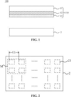 Technical Solution: Sumitomo Chemical has developed a proprietary roll-to-roll (R2R) manufacturing process specifically addressing mass transfer challenges in OPV scale-up. Their approach integrates continuous flow coating techniques with precise control of solvent evaporation rates to ensure uniform film morphology across large areas. The company's PCBM:P3HT-based active layer deposition system incorporates in-line quality monitoring with real-time feedback controls that adjust process parameters to maintain optimal phase separation during scale-up. Their technology achieves coating speeds of up to 20 m/min while maintaining film thickness variations below 5% across 1-meter widths. Sumitomo has also pioneered specialized ink formulations with rheological modifiers that improve coating uniformity and prevent aggregation during high-speed deposition, addressing one of the primary mass transfer limitations in commercial OPV production.
