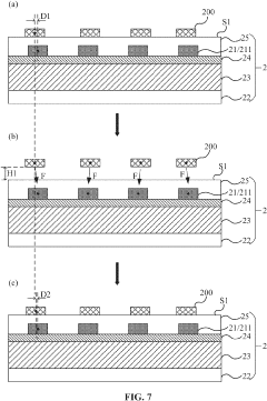 Technical Solution: Toray has pioneered a hybrid manufacturing approach for OPV scale-up that combines solution and vacuum processing techniques to overcome mass transfer limitations. Their system utilizes a specialized pre-aggregation control method for the electron donor and acceptor materials, ensuring optimal domain sizes are established before high-speed coating. Toray's process incorporates a proprietary solvent mixture system that maintains ideal rheological properties throughout the coating process, preventing the viscosity fluctuations that typically compromise film uniformity during scale-up. Their technology achieves coating speeds of 10-15 m/min while maintaining morphological control through precisely timed solvent quenching techniques. Particularly innovative is Toray's development of gradient interfacial layers that compensate for the inevitable variations in bulk heterojunction morphology that occur during high-throughput processing, effectively decoupling device performance from minor process variations.
